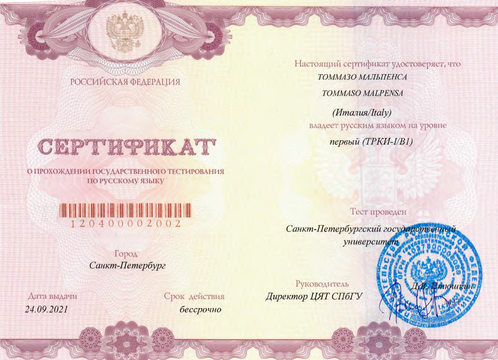 Possiedo, oltre al diploma universitario, anche i certificati appositi per l’insegnamento di russo per principianti, intermedi e avanzati;